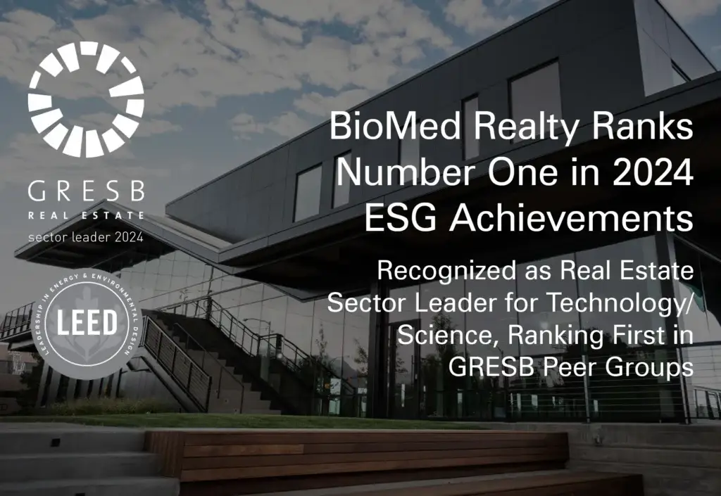 BioMed Realty is a portfolio company within Blackstone’s Core+ Life Sciences Real Estate strategy, which achieved Real Estate Sector Leader status for Technology/Science as part of the 2024 GRESB Real Estate Assessment.